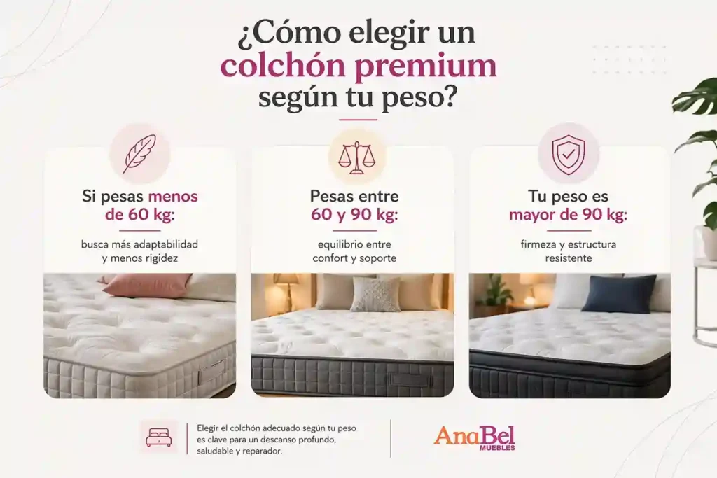 El peso corporal es uno de los factores más determinantes a la hora de elegir un colchón premium. Aunque muchas veces se pasa por alto, influye directamente en cómo se comporta el colchón: cuánto se hunde, cómo distribuye la presión y si realmente mantiene una correcta alineación de la columna.