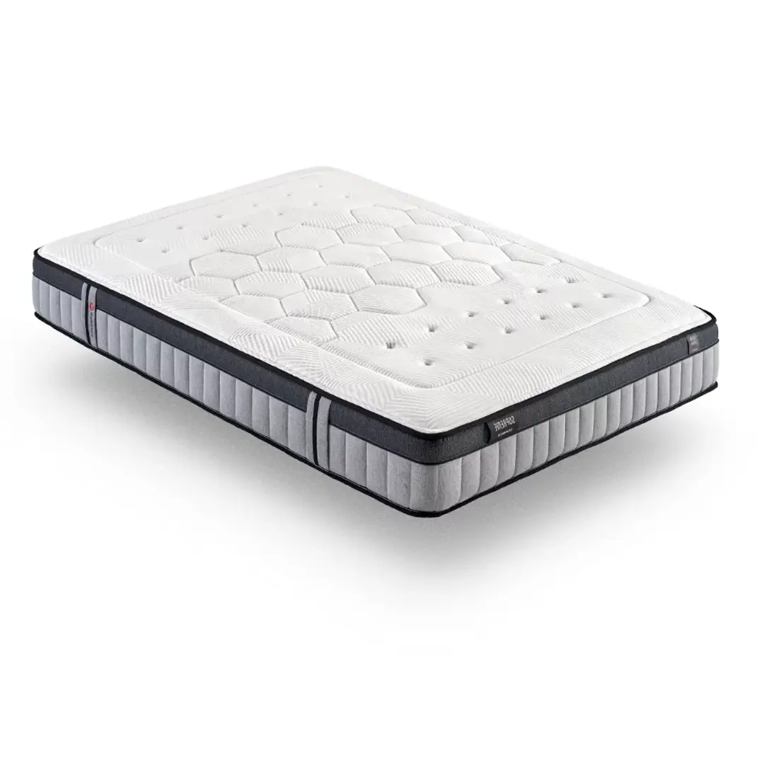 Colchón Extra Roca con tecnología Thermo Fiber termo-reguladores con carcasa de muelles extra firme, dos capas de Visctitanium Gel, tejido reforzado y marco perimetral.