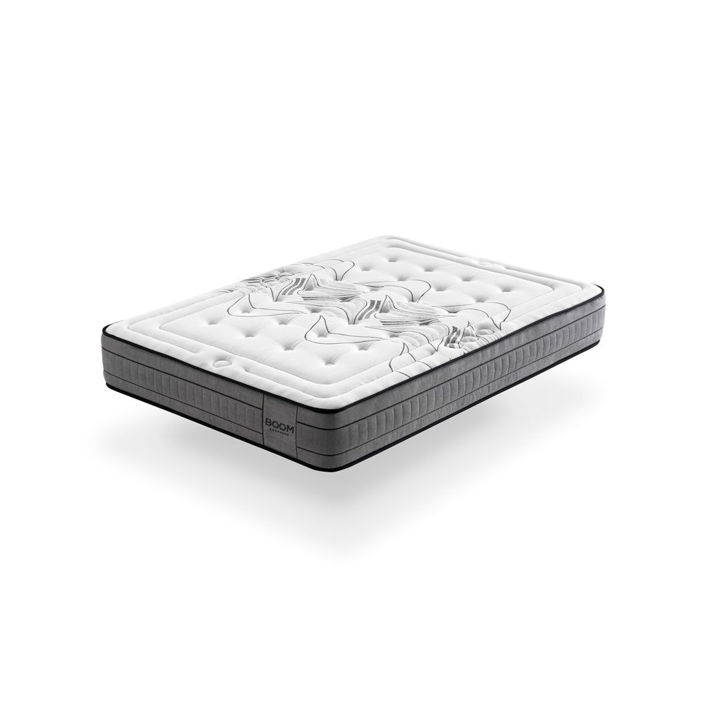 Descubre el colchón Boom. Su núcleo de espuma HR y viscoelástica alivia la presión mientras su funda de algodón orgánico cuida tu piel. Duerme mejor.