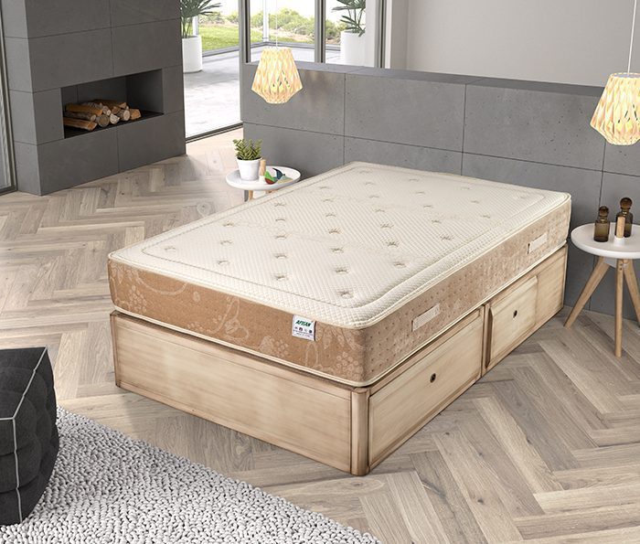 Descubre el colchón Nazca. Su núcleo de espuma HR y viscoelástica alivia la presión mientras su funda de algodón orgánico cuida tu piel. Duerme mejor.