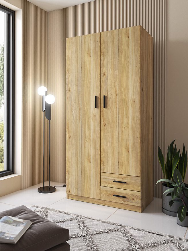 Armario de 2 puertas y 2 cajones Aura con barra para colgar