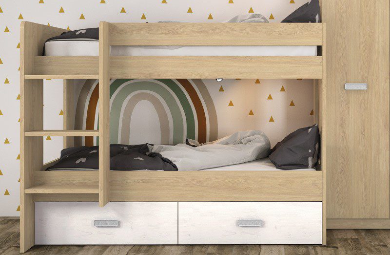 Descubre la litera con cajonera Donald, la solución perfecta para optimizar el espacio en tu hogar. Su diseño funcional ofrece comodidad para dos personas, mientras que la cajonera inferior brinda amplio almacenamiento para mantener todo en orden.