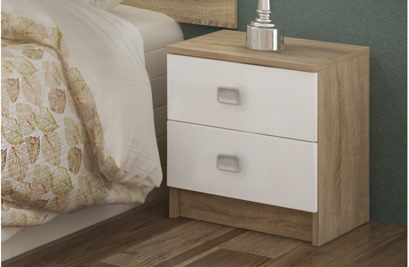 Mesita de noche juvenil dos cajones Champion con frentes blancos