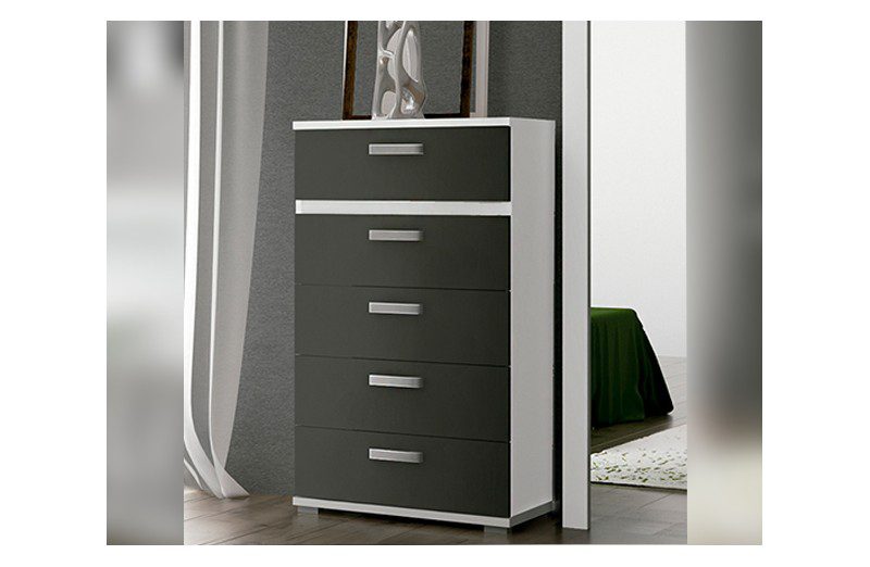 La funcionalidad se encuentra con el diseño en el Sinfonier Cabra. Olvídate del desorden y la frustración de no encontrar tus prendas favoritas. Gracias a sus cinco amplios cajones, este mueble te ofrece una solución de almacenamiento vertical que maximiza el espacio sin sacrificar el estilo. Cada cajón se desliza con suavidad, permitiéndote organizar desde camisetas y jerséis hasta accesorios y ropa interior de forma intuitiva y accesible. Este sinfonier no solo te ayuda a mantener tu habitación ordenada, sino que transforma tu rutina diaria, haciéndola más sencilla y eficiente. Su robusta construcción con materiales de alta calidad asegura una durabilidad excepcional, convirtiéndolo en una inversión inteligente para tu hogar. El acabado bicolor blanco-grafito aporta un toque de sofisticación moderna que se adapta a cualquier decoración, elevando la estética de tu dormitorio mientras resuelve tus necesidades de almacenamiento de manera impecable.