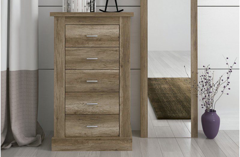Di adiós para siempre al desorden y la falta de espacio. El sinfonier de 5 cajones Chellén ha sido diseñado pensando en tus necesidades de almacenamiento reales. Sus cinco cajones, amplios y profundos, te permiten organizar desde jerséis y camisetas hasta ropa interior y accesorios, manteniendo todo protegido del polvo y al alcance de la mano. Olvídate de los muebles que se deterioran con el tiempo; su fabricación en melamina de alta calidad, con grosores de 16 y 32 mm, asegura una estructura sólida y resistente al uso diario. Además, los herrajes metálicos de primera garantizan una apertura y cierre suaves y sin esfuerzo, incluso con los cajones llenos. Con el Sinfonier Chellén, no solo ganas en organización, sino que inviertes en tranquilidad, durabilidad y un diseño que embellece tu dormitorio, creando un ambiente mucho más funcional y agradable.