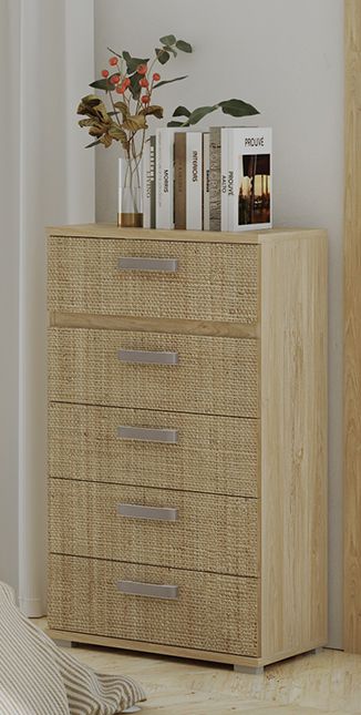 Di adiós al caos y a la ropa apilada en sillas. El Sinfonier Lica ha sido diseñado pensando en tus necesidades de organización. Sus cinco cajones, de generosa profundidad, te ofrecen el espacio vertical que necesitas para clasificar y guardar desde tus prendas más delicadas hasta tus accesorios favoritos, manteniéndolos libres de polvo y siempre a mano. Olvídate de perder tiempo buscando ese jersey o esos calcetines por la mañana. Con este mueble de almacenaje, todo está visible y accesible. Su estructura robusta en acabado Puccini-textil no solo es un placer para la vista, sino que también garantiza una durabilidad excepcional, protegiendo tus pertenencias año tras año. Gana en tranquilidad, optimiza cada centímetro de tu habitación y disfruta de la serenidad que solo un espacio perfectamente organizado puede ofrecer. El Sinfonier Lica es más que orden, es calidad de vida.
