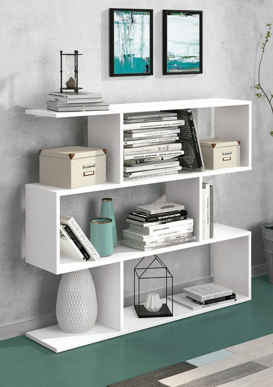 Estantería asimétrica baja Aura de melamina blanca