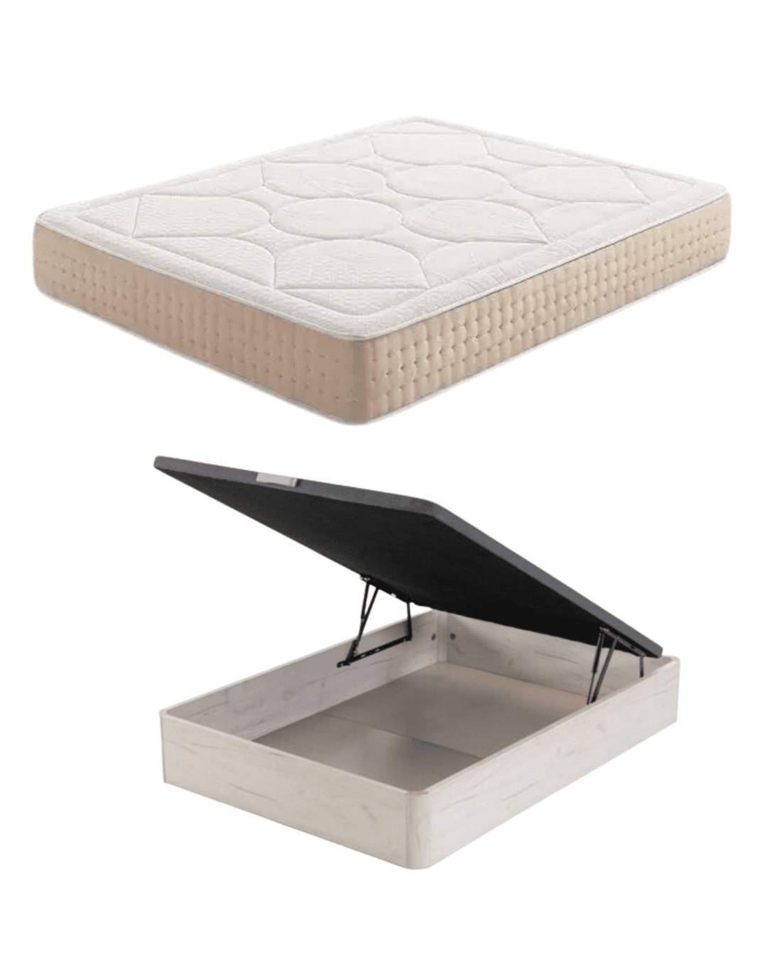 Más que un soporte, es la solución de almacenaje que tu hogar necesita. Fabricado en madera de alta resistencia y con una tapa reforzada, el canapé Danubio proporciona la base firme que el colchón Havently necesita, mientras libera tus armarios y mantiene tu dormitorio impecable. Y lo mejor: nuestro equipo lo monta por ti.