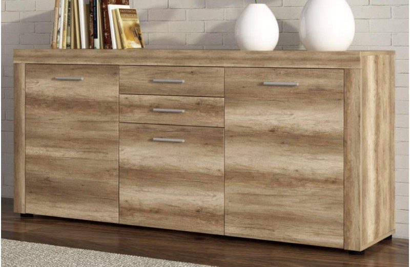 Descubre el aparador Lara de 120 cm. Con 2 puertas y 2 cajones, es la solución de almacenaje ideal. Elegante, económico y fácil de montar. ¡Elige tu color!