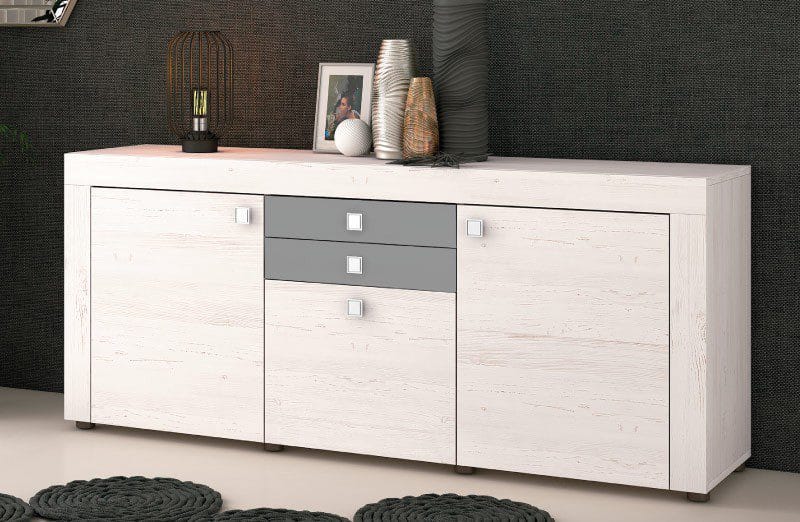 Organiza tu salón con el aparador Julieta. Diseño elegante con gran capacidad de almacenaje gracias a sus 2 puertas y 3 cajones. Elige tu acabado ideal.