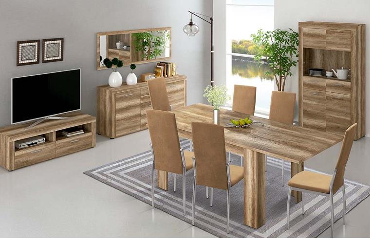 - Almacenaje inteligente: Gracias al aparador y la vitrina, tendrás espacio de sobra para organizar todo lo necesario en tu comedor.