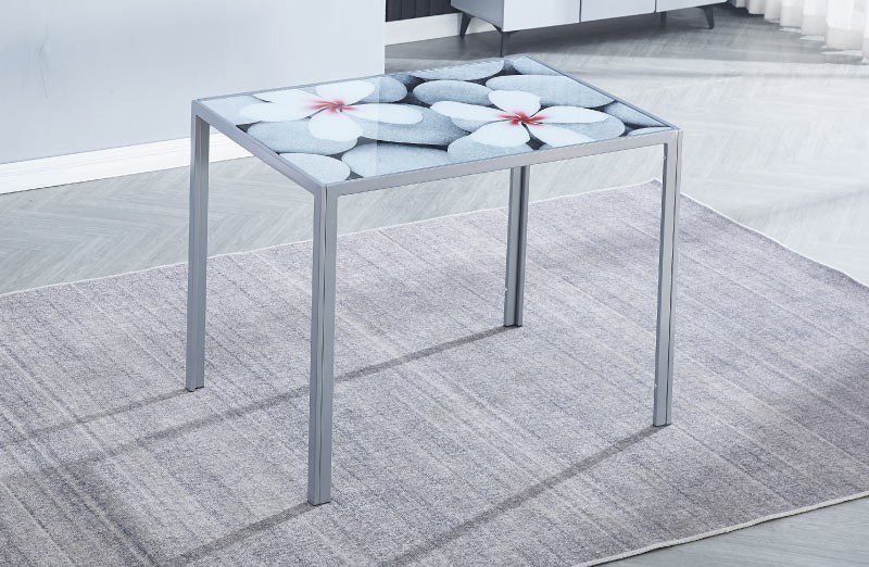 La mesa de cocina moderna Flores resuelve todos estos problemas y aporta una nota única de color gracias a su exclusiva encimera de cristal templado floral. Sus patas metálicas grises, robustas y actuales, combinan a la perfección con cocinas blancas, de madera y estilos modernos. Con dimensiones de 100×70 cm, es ideal como mesa cocina pequeña o para cocinas compactas que necesitan aprovechar el espacio sin sacrificar funcionalidad ni actualidad.